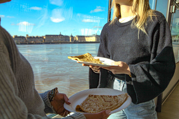 Descubran los secretos del corazón histórico de Burdeos desde nuestro barco atracado, con una vista panorámica desde el Burdigala II, y deléitense con una crepe nacida de este mismo río lleno de sorpresas.